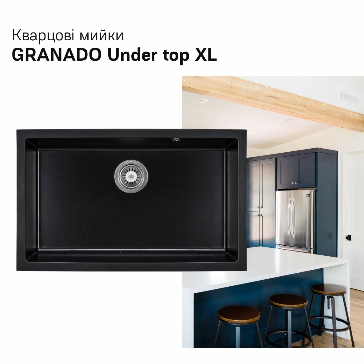 І нарешті – GRANADO Under top XL. Розміри 752*460*200 мм дозволяють розташувати у мийці металевий кошик або килимок і далі вільно нею користуватися.